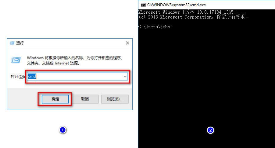 同时按下Win + R键打开运行窗后,在打开后的文本框中输入“cmd”,按Enter键打开命令提示符窗口。