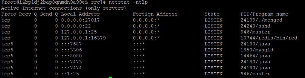 netstat -ntlp 查看端口情况