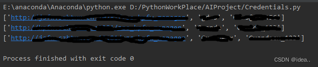 打印结果为凭据的[网络地址,用户名,密码]的数组。