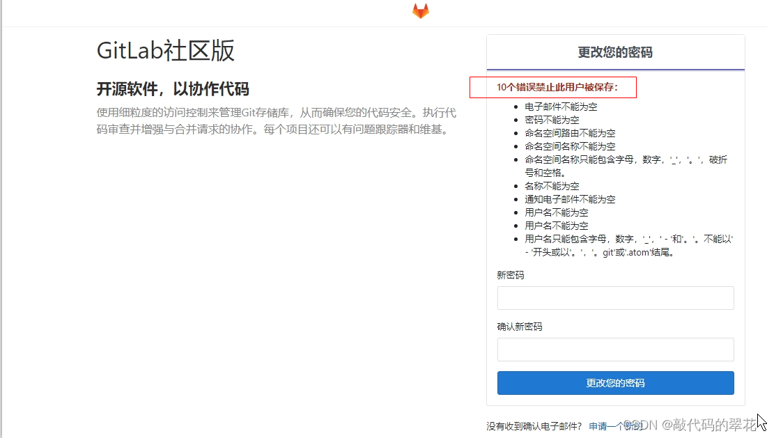 原因分析:是因为我配置了安装步骤的第二步,需要邮箱,按照官网修改配置,安装Postfix以发送通知电子邮件。如果要使用其他解决方案发送电子邮件,请跳过此步骤并在安装GitLab后配置外部SMTP服务器