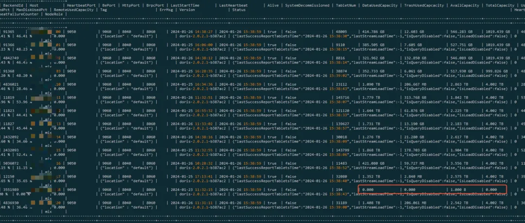 当对应BE节点的相关指标都为0时,表示磁盘不存在,或者被标记为bad,