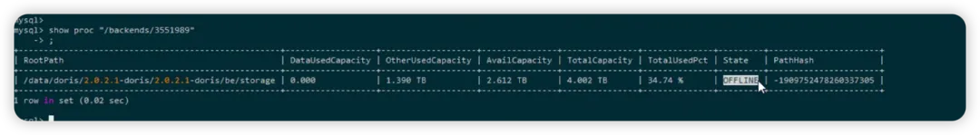 通过命令 show proc “/backends/” 可以查看该BE 的磁盘情况。