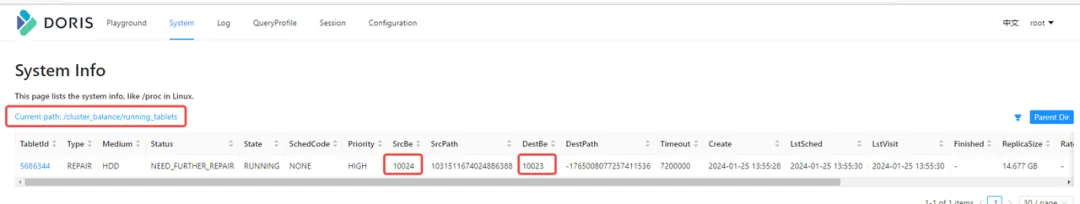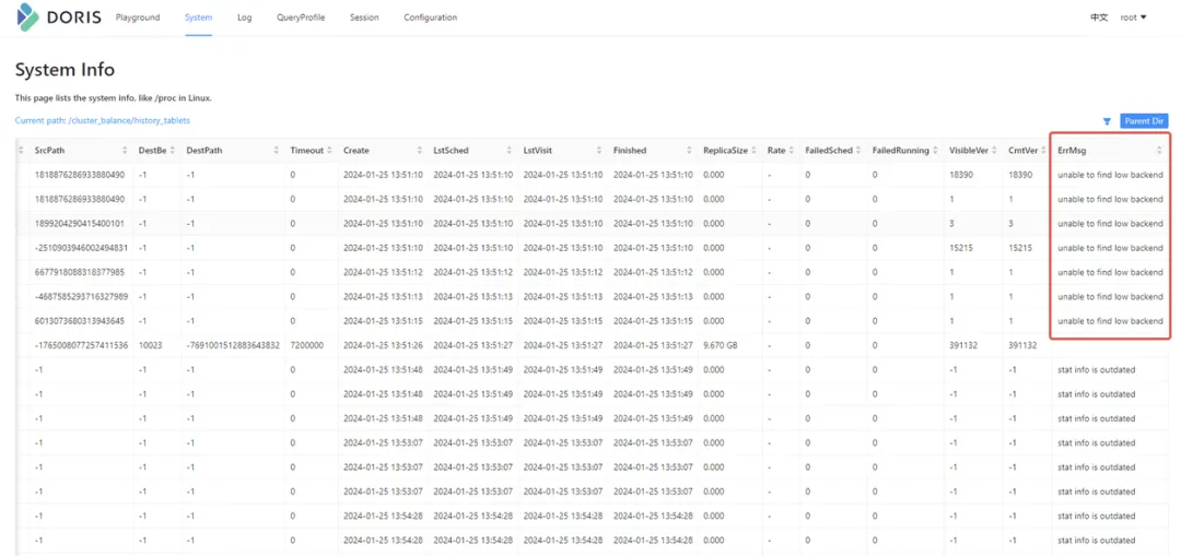 或者通过搜索Master FE的日志grep “tablet schedule|TableSch” fe.log|grep tablet_id