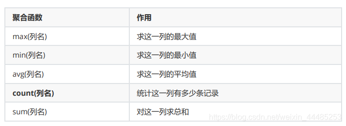 语法:select 聚合函数(列名) from 表名 [where 条件];