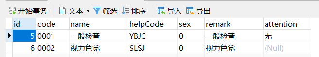 字段名:即创建表的列的名字(此处的id、以及code等等都是字段名)