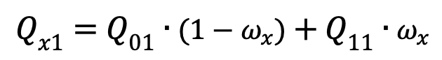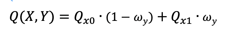 第二步:沿 Y 轴方向,固定 X,对 Qx0和 QX1做一维线性插值