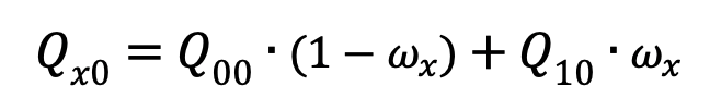 ∈[0,1],确保插值结果在4个顶点Q值的范围内)。