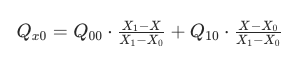 对 Qx0(Y=Y₀)和 Qx1(Y=Y₁)应用一维线性插值公式: