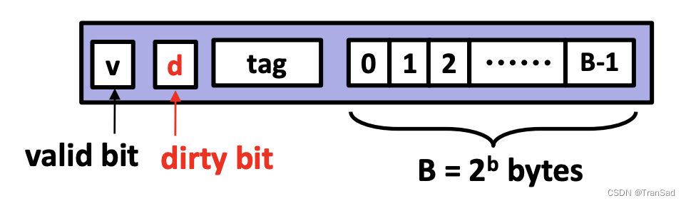 写回(Write-Back):这种策略仅将更改写入到缓存中,并将缓存行标记为"dirty"(通过设置一个"dirty bit")。只有当缓存行被替换出缓存时,更改才会被写回到主存储器。这里的dirty bit就是替换时用来判断的,如果是1,那么就需要把整个缓存行(包含2^b字节的数据块)写回(write-back)到主内存。这种策略的优点是减少了对主存储器的访问次数,从而提高了性能。但是,这也可能会导致主存储器与缓存之间的数据不一致。