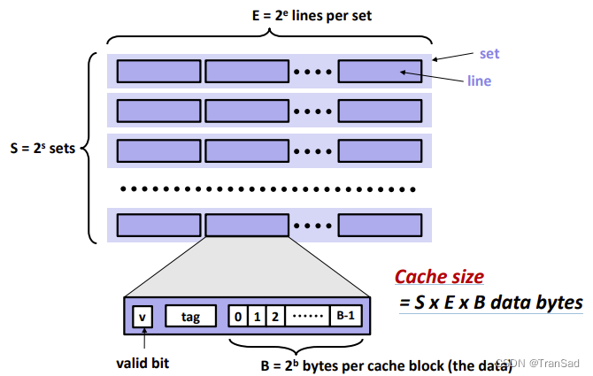 - E:每个集中的线数(Line),也就是每个集中的缓存块数量(Cache blocks per set)。