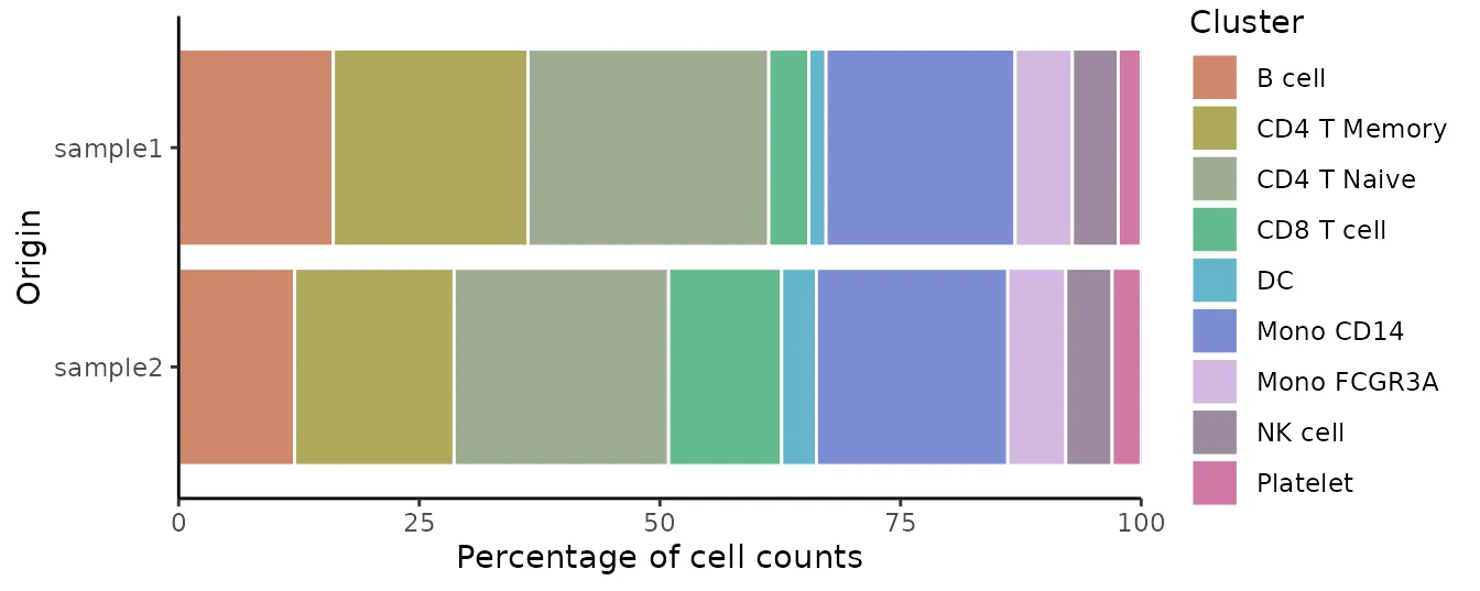 想知道每个样本中各细胞集群的比例?这个函数能帮你快速可视化:
