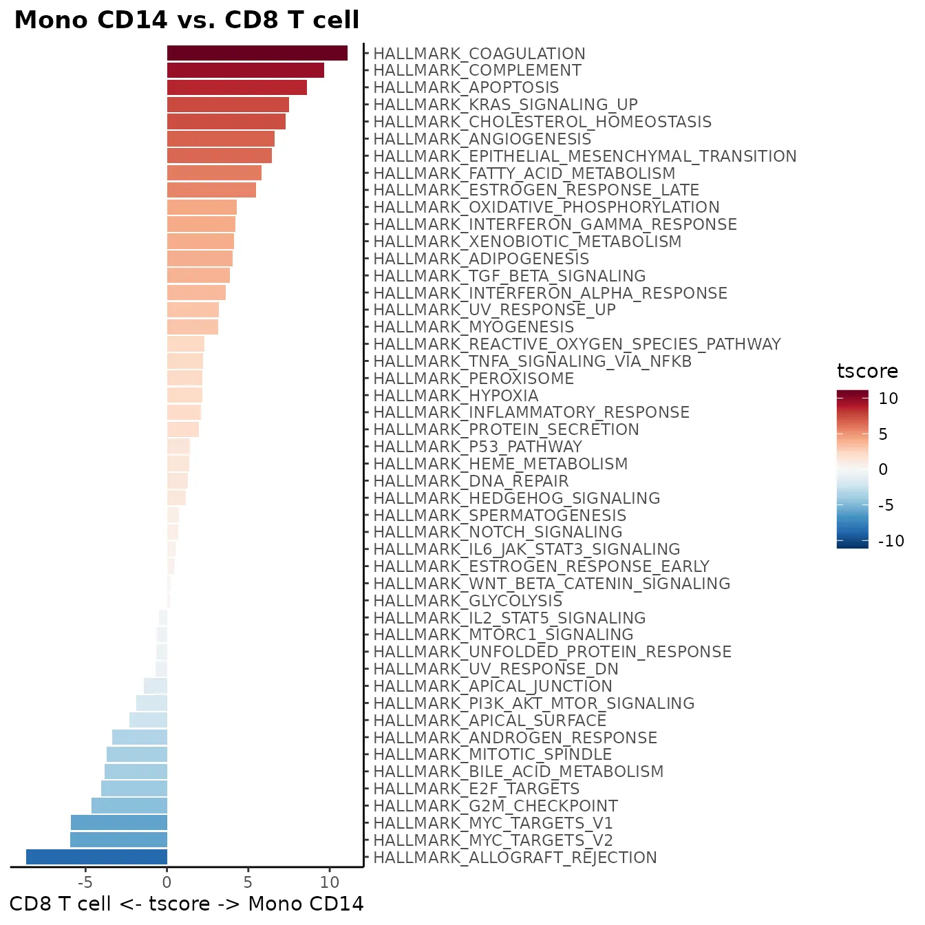 WaterfallPlot(matr, f = pbmc$cluster, ident.1 = "Mono CD14", ident.2 = "CD8 T cell")