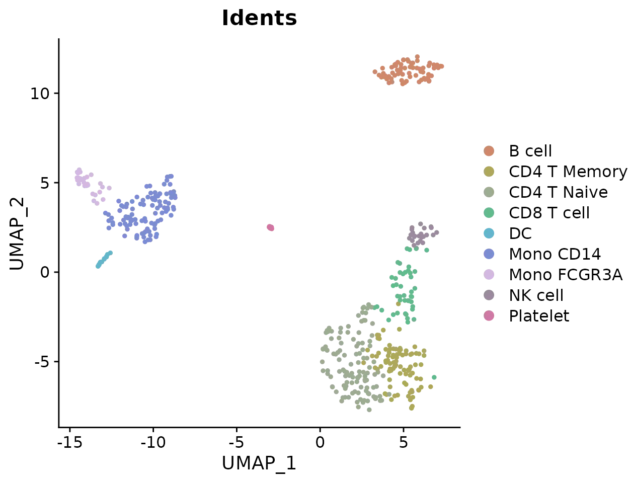 DimPlot2(pbmc, cols = "pro_blue") # 专业蓝色系