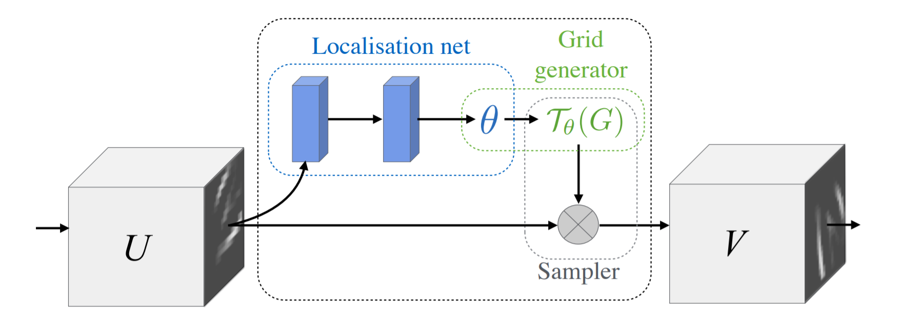 3)采样器 (sampler):以特征图和采样网格作为输出,生成从网格点输入的采样输出图。