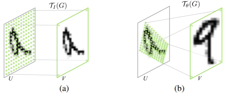 \tag{1} \left(\begin{matrix} x_i^s\\ y_i^s \end{matrix}\right)=\mathcal{T}_\theta(G_i)=A_\theta \left(\begin{matrix} x_i^s\\ y_i^s\\ 1 \end{matrix}\right)= \left[\begin{matrix} \theta_{11} & \theta_{12} & \theta_{13}\\ \theta_{21} & \theta_{22} & \theta_{23}\\ \end{matrix}\right] \left(\begin{matrix} x_i^s\\ y_i^s\\ 1 \end{matrix}\right)