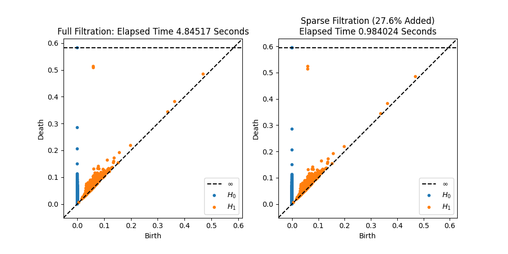 plt.title("Sparse Filtration (%.3g%% Added)\nElapsed Time %g Seconds"%(percent_added, timesparse))