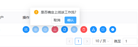 注意:上线状态的工作流不能编辑,如果需要编辑则需要将该工作流下线