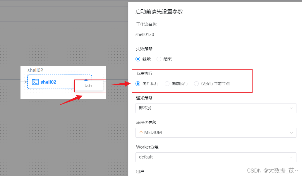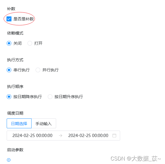 在点击运行之后,在启动前请先设置参数的界面勾选是否是补数,并选中对应的补数方式和日期即可