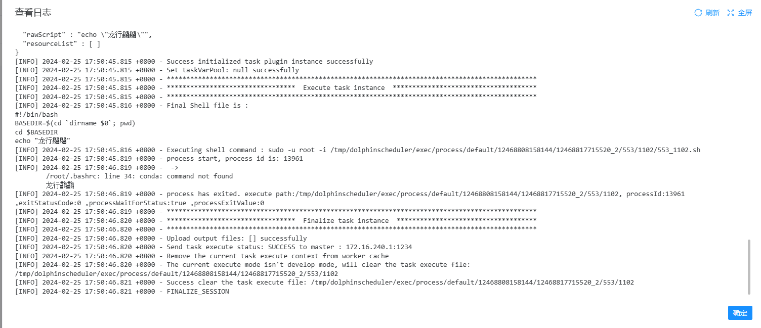 可以在任务实例中查看刚才执行的任务运行状态和日志