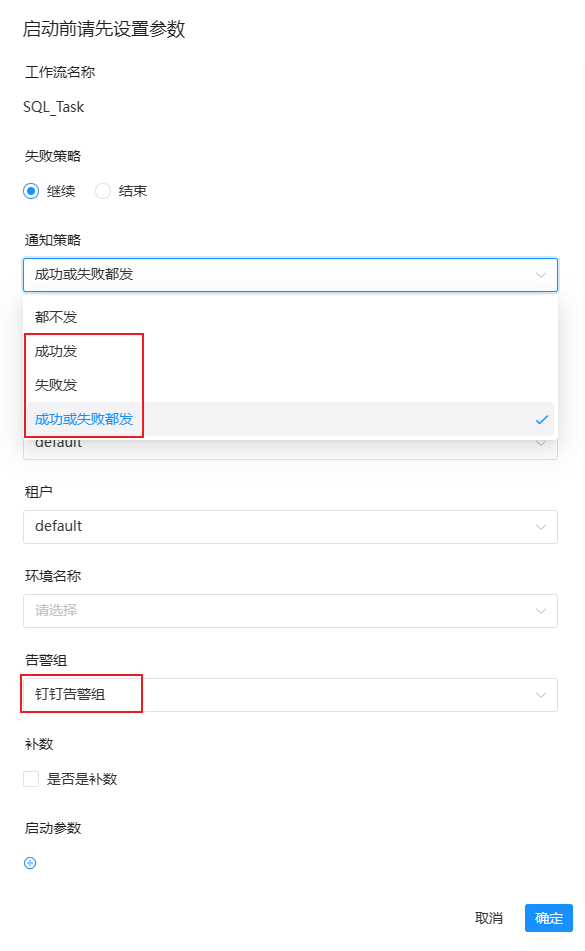 找一个任务,运行,设置通知策略,选择刚才创建好的钉钉告警组
