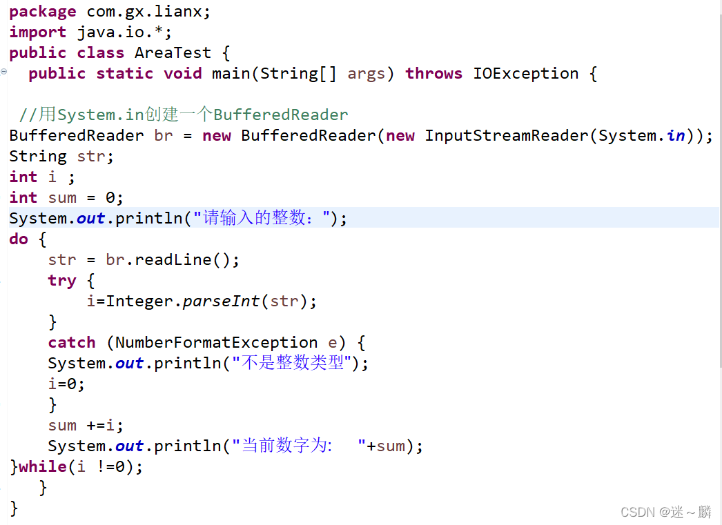 上面的程序如何不是输入整数就把sum打印成0,需要输入整数,才会执行正确。否则会打印异常里的输出。
