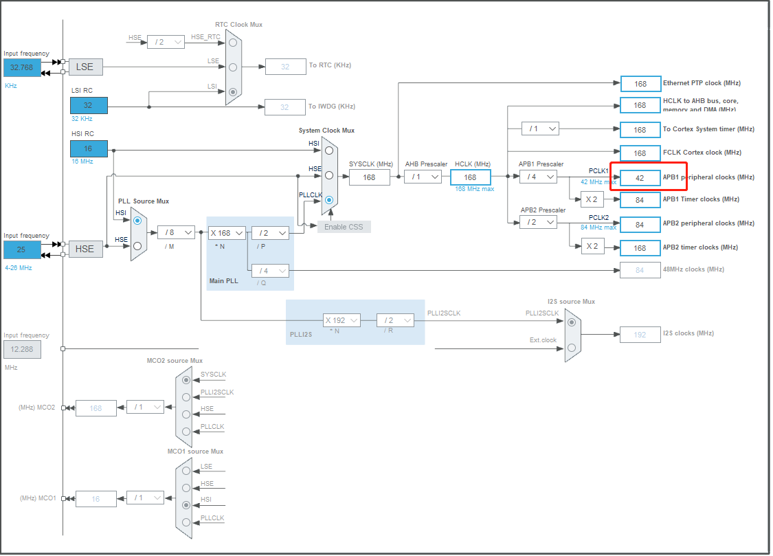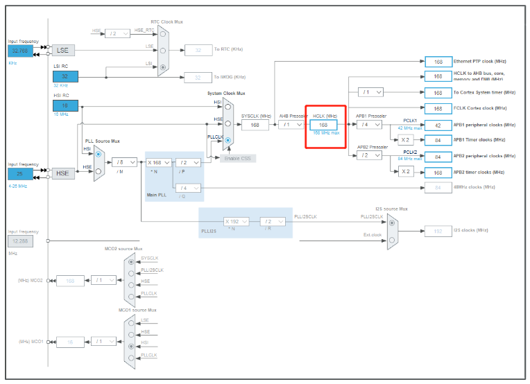直接输入红框内最大主频,回车确定,时钟树会自动进行最优分配。