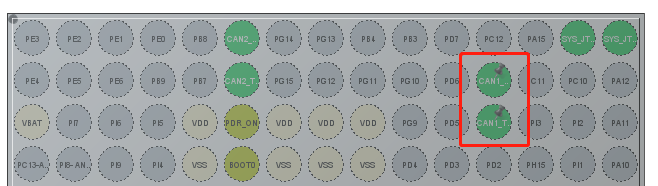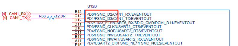 程序烧录后发现电机并没有转动,通过翻阅C板原理图得知,Can1引脚为D1、D2。如下图所示。