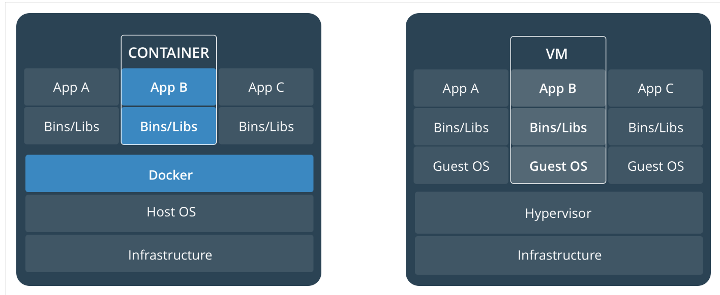 - docker有着比虚拟机更少的抽象层:由于docker不需要