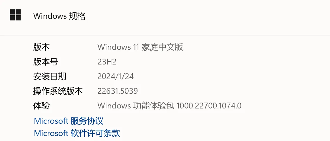 打开 设置 -> 系统 -> 系统信息 -> Windows 规格