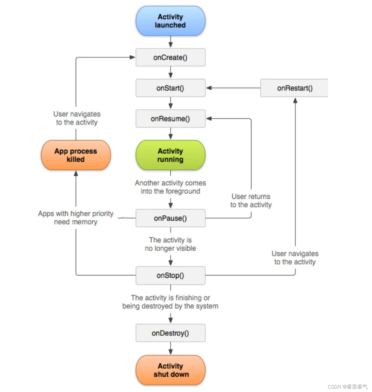 Android四大组件总结 注意点:如果一个组件通过startService() (会有onStartCommand()方法的调用)来启动服务,则该服务将会保持运行状态,直到它停止使用stopSelf()或者另一个组件通过stopService()来停止它;如果一个组件调用bindService()来创建服务(并且不调用onStartCommand()),那么只要该组件绑定了服务,该服务就会运行起来,一旦服务从所有的客户端解除绑定,系统就会销毁它。