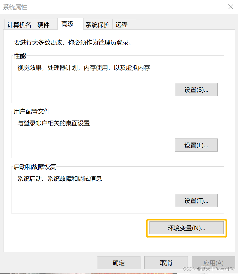 ①【此电脑】-单击右键-【属性】-【高级系统设置】-【环境变量】