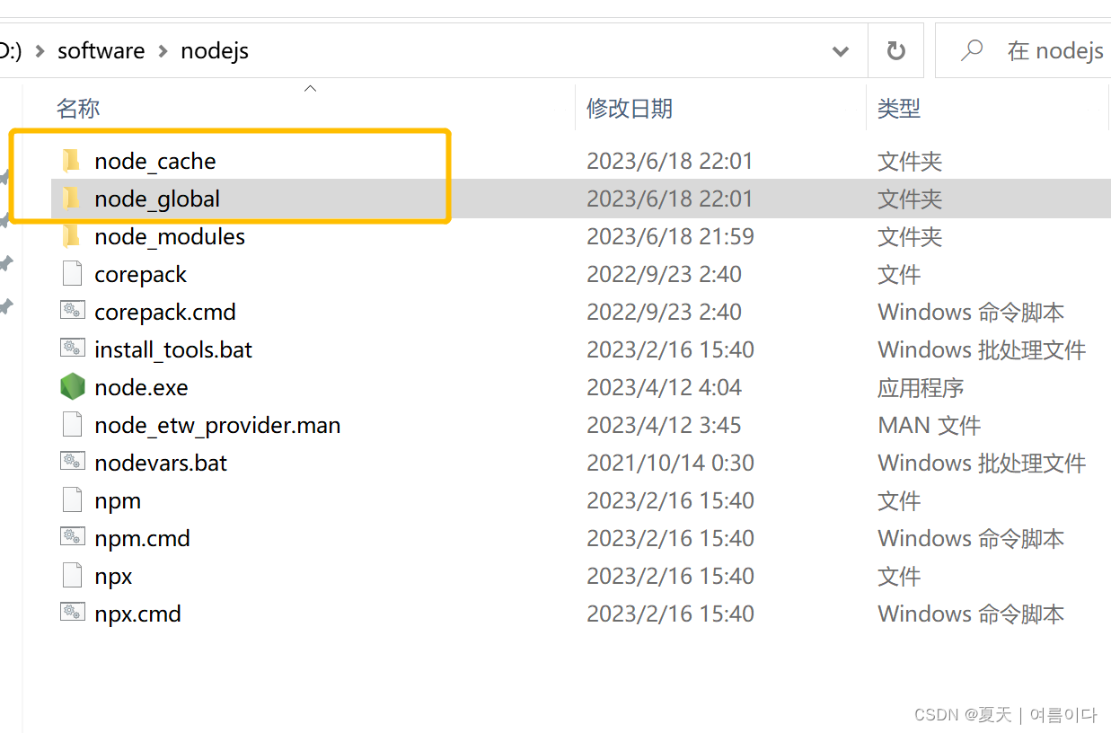 Step 2:找到nodejs安装的目录,在安装目录下新建两个文件夹【node_global】和【node_cache】