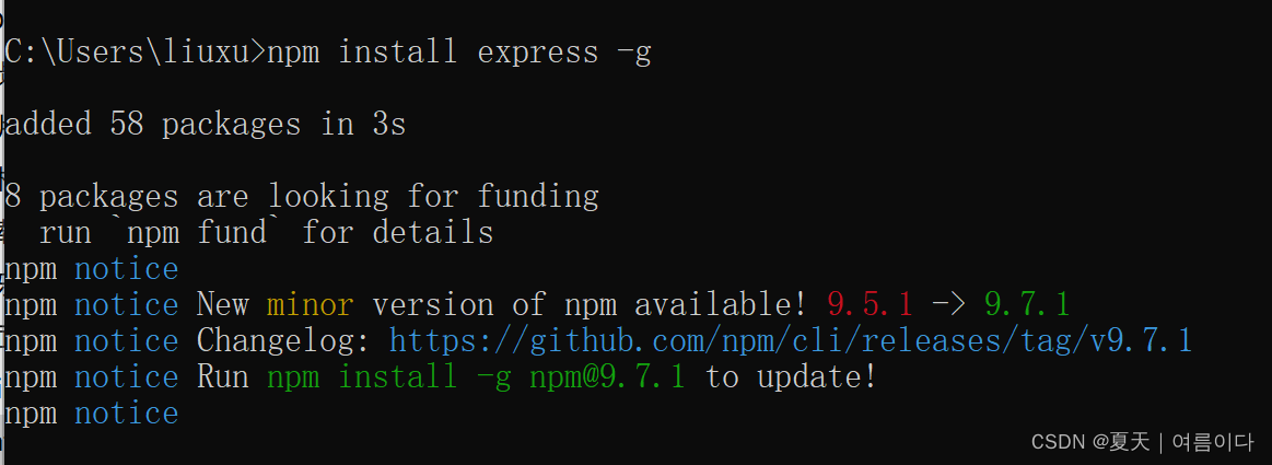 配置完成后,全局安装一个最常用的 express 模块进行测试