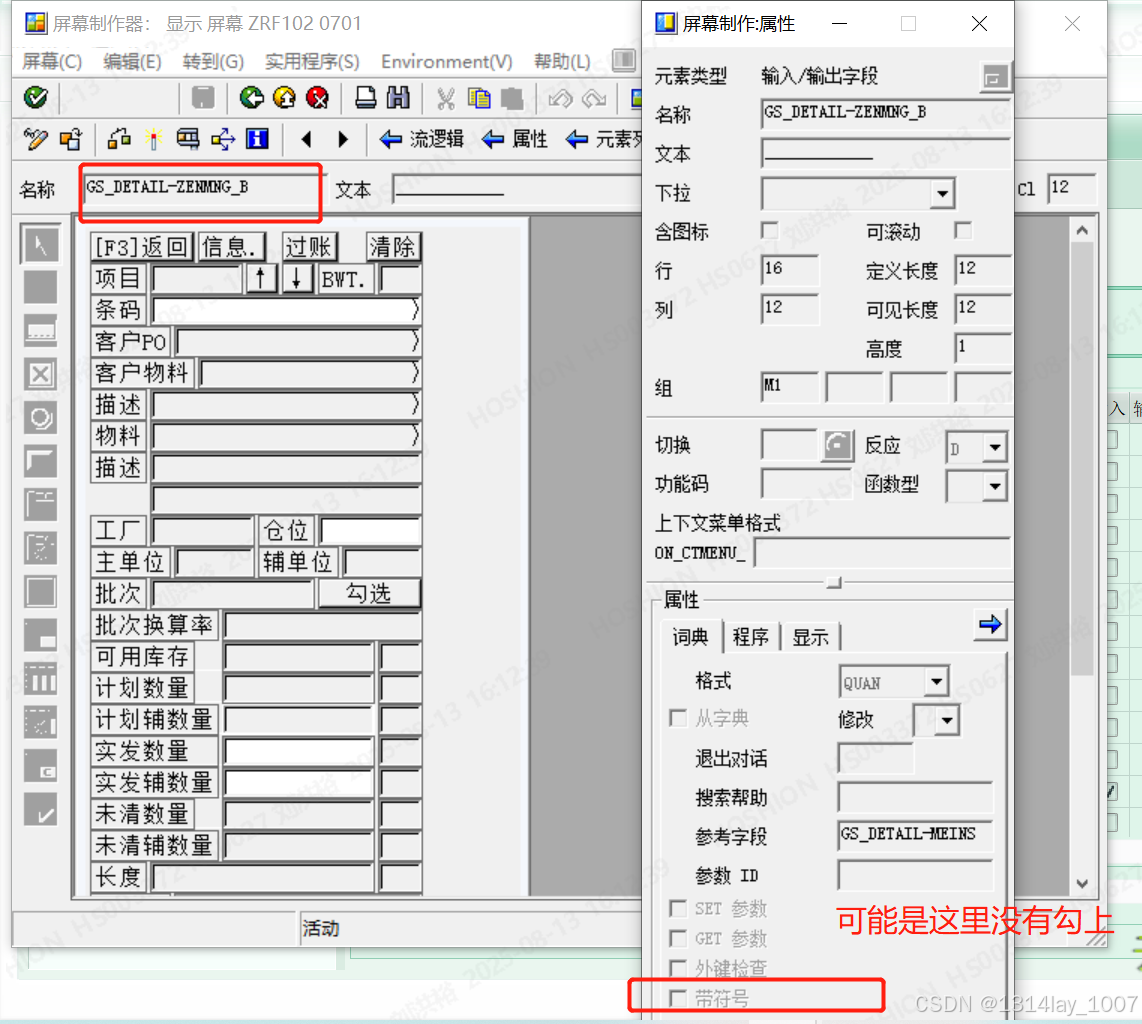 - 表维护场景:在表维护生成器中双击屏幕号,进入格式修改页面勾选"带符号"选项(显示为"V"标识)1
