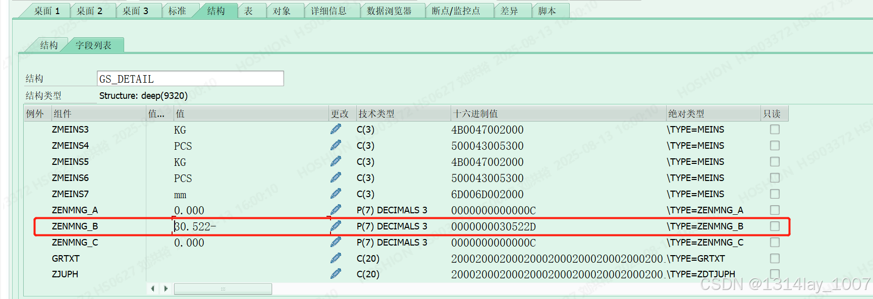 ① 表字段是否启用符号位(通过SE11查看数据元素属性)1;