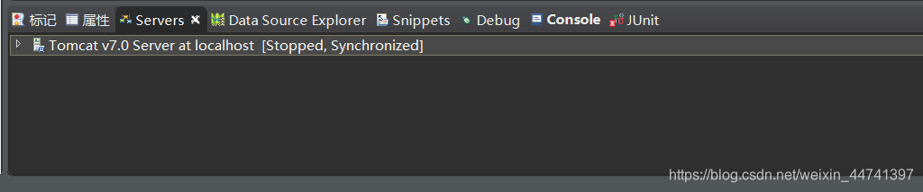 三、第一在下面控制台中找到Servers,然后看看是否启动了Tomcat。这里是Stopped所以我这里是没有启动的