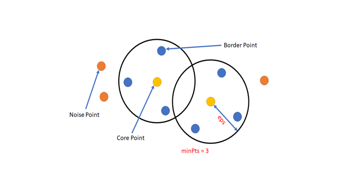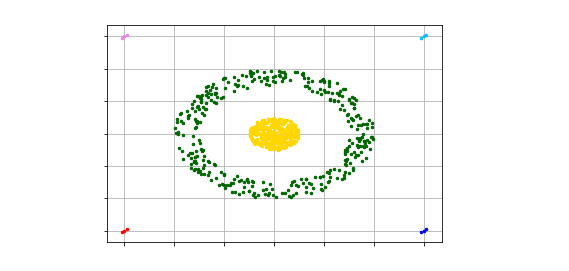 DBSCAN 具有噪声的基于密度的聚类方法 DBSCAN 将聚类视为 区别于低密度区域的 高密度区域。由于这种相当普遍的观点,DBSCAN可以找到任何形状的聚类,而不是像K-Means算法一样,它最小化聚类内的平方和,这对于凸的形状(convex shapes)很适用。再者,DBSCAN还可以自动判断出聚类的数量。DBSCAN核心成分是核心样本的概念。核心样本是指在eps的距离内 有至少minPts个其他数据点的 点。minPts: 对于聚类,形成一个密度区域的最少的数据点eps: 用于指定任何数据点的邻域距离的度量。如果两个数据点间的距离小