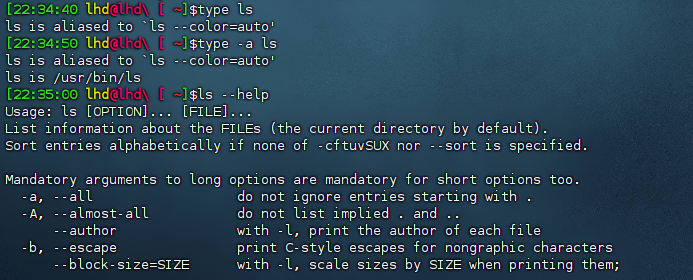众多外部命令都支持 --help 选项,使用该选项可以快速查看命令的基本用法和参数说明。