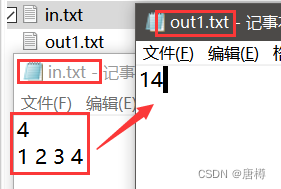 例子3.读取in.txt文件的数据,把它们的和保存到out.txt中;