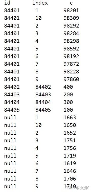 ,bd1 as (select id,index,count(1) as c from bd group by id,index)