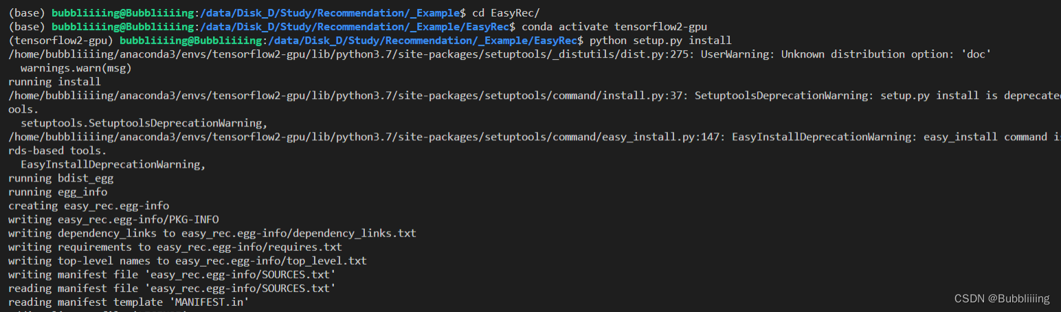 在完成init之后,我们可以通过setup.py进行EasyRec的安装。