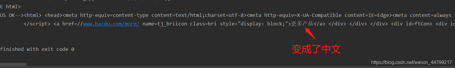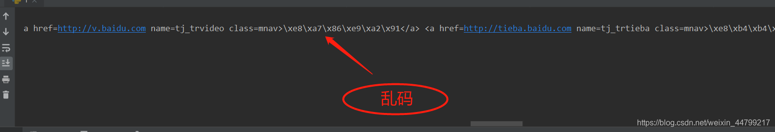 观察上边代码运行结果发现,有好多乱码;这是因为编解码使用的字符集不同早造成的;我们尝试使用下边的办法来解决中文乱码问题 【手动设置编码格式 response.encoding = 'utf8' , 此时写成'utf-8'也是可以的】