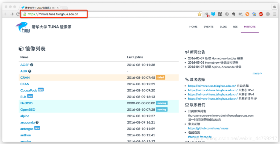 镜像源说明: