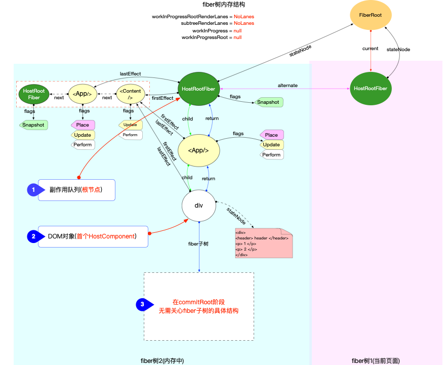 workInProgressRoot,workInProgress等) - 再次更新副作用队列: 只针对根节点