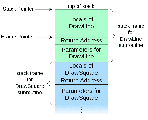 我假设你们都熟悉调用堆栈的概念。如果你在断点处暂停代码,则可以在浏览器的调试工具中看到这一点。以下是维基百科的一些相关引用和图表: