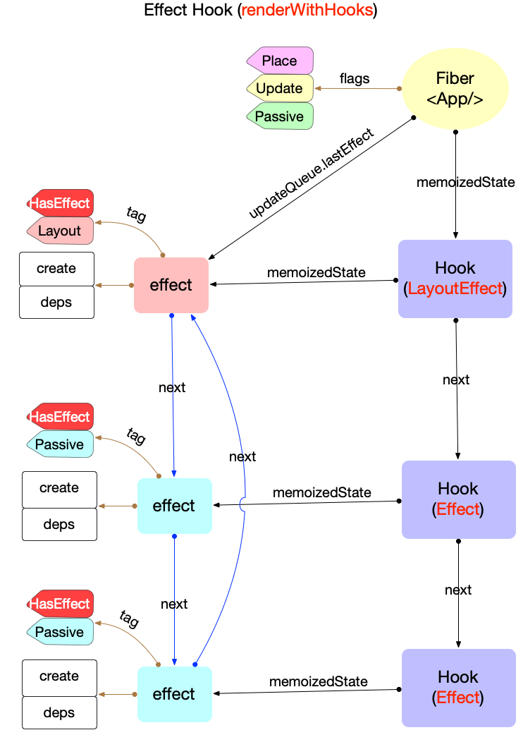 本节分析了副作用Hook从创建到销毁的全部过程, 在react内部, 依靠和effect.tag实现了对effect的精准识别. 在commitRoot阶段, 对不同类型的effect进行处理, 先后调用和。