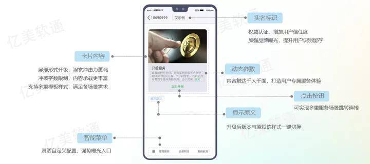 也就是说,企业在与合作的信息服务商那里开通AIM消息服务之后,提前设置好AIM模板,当带有特殊标识的内容下发之后,用户侧就会自动解析为预设的模板样式。