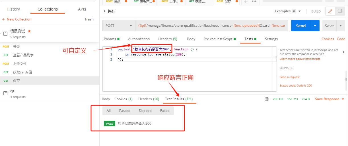 断言,包括状态码断言和业务断言,状态码断言有一个,业务断言有多个。