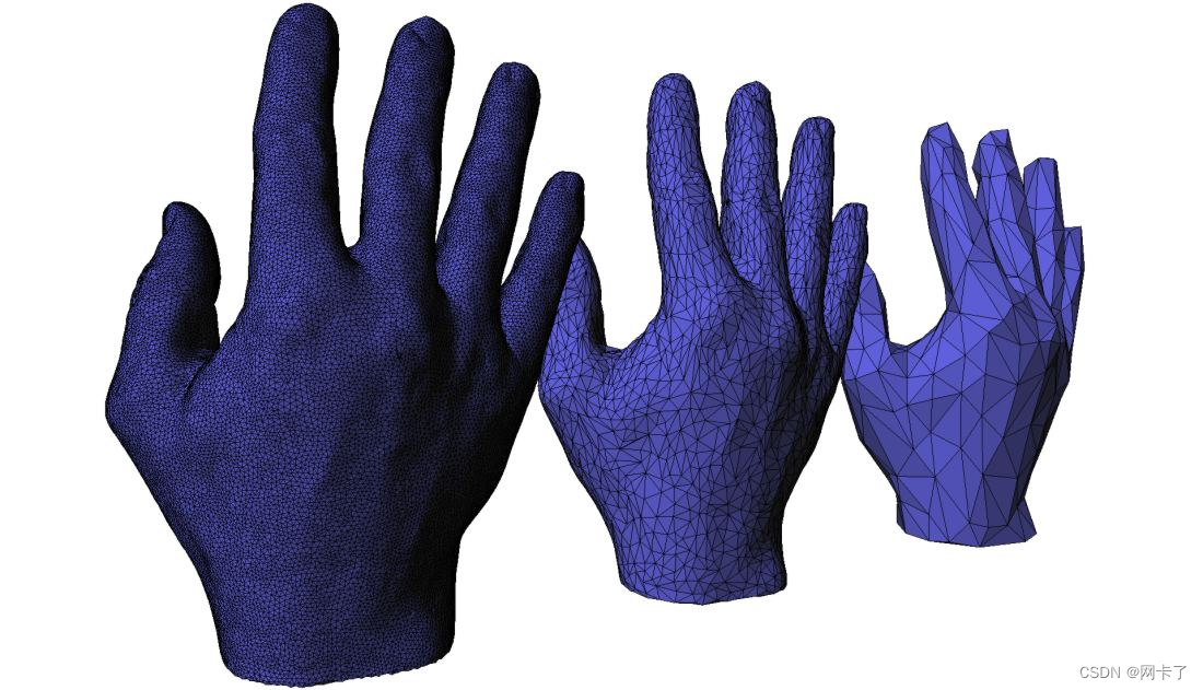曲面网格简化是减少曲面网格中使用的面数,同时尽可能保持整体形状、体积和边界的过程。它是细分法的反面。