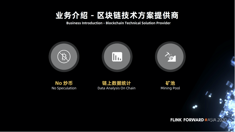 整体而言我们是一家区块链技术方案的提供商,提供挖矿的服务。与金融行业的银行一样,我们也有很多的 OLAP 需求,比如当黑客攻击交易所或供应链进行资产转移或者洗钱时,需要经过链上的操作,我们可以在链上对其进行分析,以及交易上的跟踪,统计数据等,为警方提供协助。